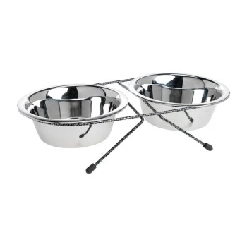 - 1x AniOne Edelstahlnapfset mit 2 Näpfen 200ml und passender Metallhalterung