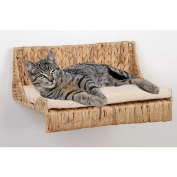 Unter dem anschmiegsamen Geflecht aus Wasserhyazinthe versteckt sich ein stabiles Metallgestell, das dieser Kletteretage den notwendigen Halt gibt. Ganz einfach gestalten Sie so eine zusätzliche Liegefläche für Ihren Zimmertiger an der Wand. Das gemütliche Kissen ist mit einem Bezug aus 100 % Baumwolle bezogen und sorgt für Bequemlichkeit. Die Lieferung erfolgt inkl. Befestigungsmaterial.