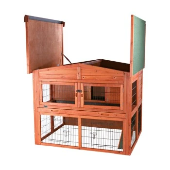 Dieser zweistöckige natura Kleintierstall mit integrierter Rückzugsmöglichkeit und Freilaufgehege besteht aus lasiertem Kieferholz. Das Dach ist mit Dachpappe beschichtet und die Dachhälften lassen sich von oben öffnen.